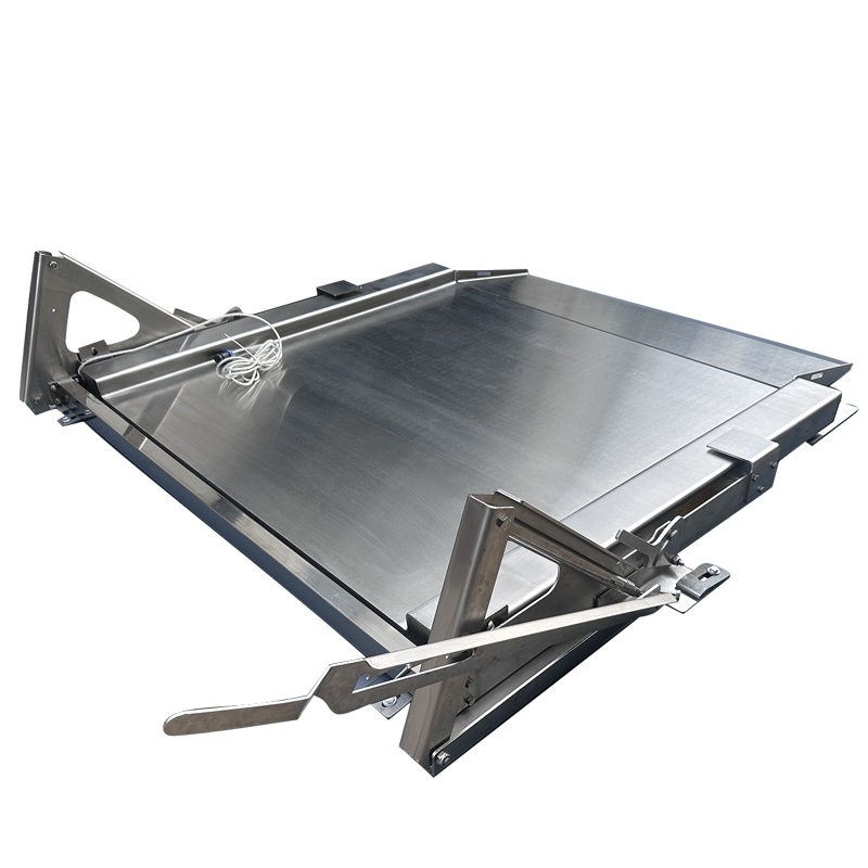 3.可掀起設(shè)計(jì)采用力學(xué)原理通過(guò)氣動(dòng)彈簧實(shí)現(xiàn)自動(dòng)掀起,便于沖洗秤體表面。